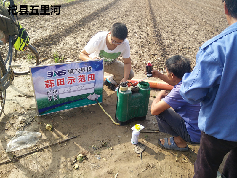 農(nóng)資經(jīng)銷商專題報道——蒜田系列除草產(chǎn)品示范試驗該怎么做?濱農(nóng)科技有奇招發(fā)布時間:2018-08-29 08:59大蒜因茬口和輪作方式不同草相比較復(fù)雜,且具有發(fā)生期早、發(fā)生量大,發(fā)生期較長等特點,人工除草難度大。若不采取化學(xué)除草,雜草與大蒜爭光、爭水、爭養(yǎng)分,造成大蒜減產(chǎn)和品質(zhì)下降,一般減產(chǎn)20%-30%,嚴重的減產(chǎn)50%以上。所以做好化學(xué)除草是大蒜優(yōu)質(zhì)高產(chǎn)栽培的必要措施之一。 大蒜雜草危害出現(xiàn)2個高峰期,分別為冬前和春天,不同地區(qū)雜草發(fā)生差異較大,除常見薺菜、播娘蒿外,以大蒜-水稻輪作的地區(qū),看麥娘、牛繁縷、繁縷發(fā)生嚴重,大蒜-玉米輪作地區(qū),野燕麥、豬殃殃、田旋花發(fā)生嚴重,且近幾年草相也在逐漸發(fā)生變化,如鐵莧菜、婆婆納、馬唐、牛筋草、狗尾草、馬齒莧等,部分雜草地塊集中性發(fā)生。部分雜草較難防治,如豬殃殃、田旋花等,種子掩埋較深,出土?xí)r間長,生長繁殖能力強等原因,封閉效果差。 一、大蒜田除草劑的選擇是增產(chǎn)增收的關(guān)鍵,如何選擇? 1、看企業(yè)、品牌和銷量:選擇正規(guī)大企業(yè),產(chǎn)品和服務(wù)有保證; 2、看含量:含量高,藥量足,效果好。 3、看配方: 由于常年用藥,雜草產(chǎn)生了抗藥性,此外蒜田雜草多為禾本科及闊葉類雜草混發(fā),使用單劑類產(chǎn)品效果不理想,因此盡量選擇多元復(fù)配的除草劑。 4、看成分:多年使用除草劑發(fā)現(xiàn),乙草胺對大蒜的傷害越來越重,導(dǎo)致大蒜苗黃、苗弱、根系不發(fā)達,盡量選擇安全性高的不含乙草胺的產(chǎn)品。 二、選擇濱農(nóng)科技蒜田產(chǎn)品的理由 1、企業(yè):山東濱農(nóng)科技有限公司是全國最大的選擇性除草劑生產(chǎn)企業(yè),確保所生產(chǎn)的每一瓶除草劑產(chǎn)品的質(zhì)量,提供全面的市場及技術(shù)服務(wù)。 2、產(chǎn)品——50%乙氧·異·甲戊乳油: (1)50%含量高,三元復(fù)配,擴大殺草譜提高了除草效果,同時延緩了雜草抗性;(2)關(guān)鍵是解決了乙草胺藥害問題,濱農(nóng)蒜田除草劑引用國內(nèi)較為高端的異丙甲草胺代替乙草胺,不傷根,不傷苗,解決雜草危害,提升了大蒜產(chǎn)量和品質(zhì)。 三、濱農(nóng)蒜田系列產(chǎn)品藥效展示
