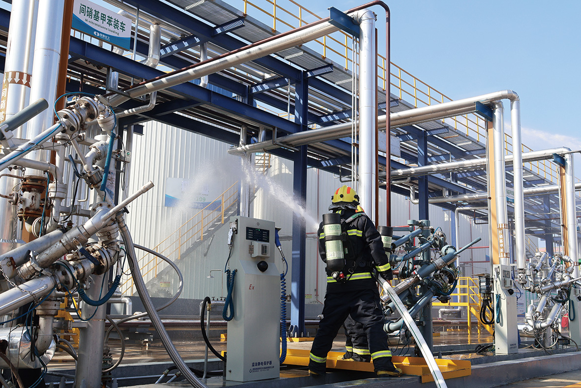 本次演練模擬1 # 罐區(qū)甲醇儲罐罐底閥泄露著火場景,現(xiàn)場可燃?xì)怏w報警器報警后,操作負(fù)責(zé)人立即啟動處置方案,各裝置一鍵停車; 總指揮同步啟動公司應(yīng)急預(yù)案,聯(lián)系消防隊支援,并按預(yù)案分組開展先期處置、信息傳遞、聯(lián)合救援、警戒洗消、醫(yī)療救護(hù)、氣象檢測、搶險搶修及人員疏散等工作,各應(yīng)急小組協(xié)同配合,順利完成演練。安全部主任孫文杰對本次演練進(jìn)行了點評,郭總結(jié)合本次演練的不足之處, 要求各車間部門要進(jìn)一步完善應(yīng)急預(yù)案與程序,不定期開展救援演練,防患于未然。