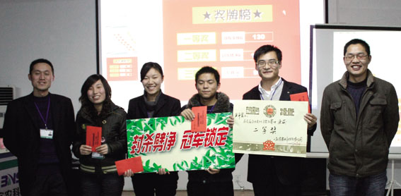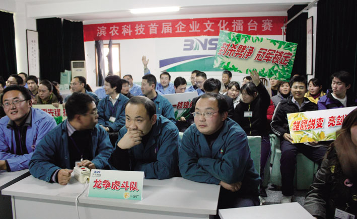 2009年12月10日下午,濱農科技首屆企業(yè)文化擂臺賽圓滿落下帷幕。本次擂臺賽的主要目的是促進企業(yè)文化理念及行為知識內化,加強員工學習企業(yè)文化的主動性積極性。主要出題范圍是企業(yè)文化手冊全部內容以及部分安全、產品知識,貼近企業(yè)實際。以企業(yè)文化培訓考評小組為單位,比賽共分成七支代表隊,每隊有三名選手和五名親友團隊員組成。整場比賽分必答題、搶答題、風險題三個環(huán)節(jié),還為現(xiàn)場觀眾設置了觀眾題。公司總經(jīng)理助理任立巖擔任總裁判。