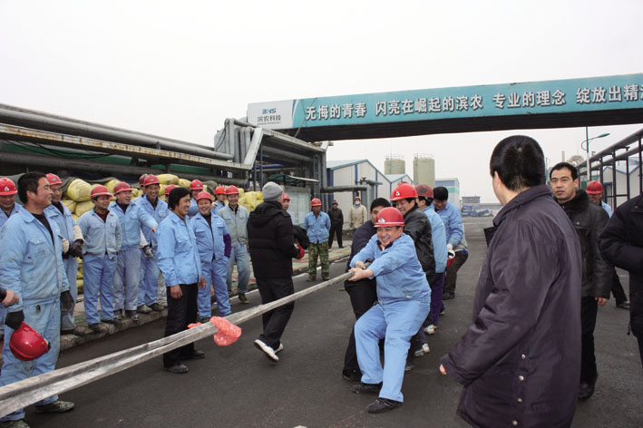 2010年 2月7日上午,二分廠懸浮劑車間舉辦了2010年第一屆車間趣味運(yùn)動(dòng)會(huì),二分廠廠長鄭軍做了賽前講話。比賽分為三個(gè)環(huán)節(jié):第一項(xiàng)拔河比賽,體現(xiàn)團(tuán)隊(duì)精神。第二項(xiàng)綁腿跑比賽,體現(xiàn)協(xié)作能力和技巧。第三項(xiàng)滾大桶比賽,考驗(yàn)賽手掌握技巧能力。比賽競爭激烈,各選手備戰(zhàn)十足。拔河比賽最終由牟俊龍、王朋會(huì)、呂清華、聶國俊、劉亞臣、孫大慶、孟祥輝、劉衛(wèi)東、付志樂、王汝江十名員工奪冠;綁腿跑比賽由趙洪泉、李樹泉;李偉松、崔連友;王汝江、薛呈濱三組員工榮獲前三;滾大桶比賽中,陳會(huì)永、宋建永、周洪星三人脫穎而出。
