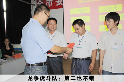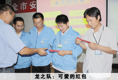 比賽設(shè)有必答題、搶答題、風(fēng)險(xiǎn)題三個(gè)環(huán)節(jié),還為現(xiàn)場觀眾特設(shè)了觀眾題。副總經(jīng)理陳延剛擔(dān)任總裁判。比賽內(nèi)容涵蓋企業(yè)文化、安全環(huán)保、規(guī)章制度等各個(gè)方面,內(nèi)容豐富,涵蓋面廣,重點(diǎn)突出,出題方式靈活多樣。各隊(duì)選手們準(zhǔn)備充分,精神飽滿,競賽過程拼搶激烈,高潮迭起,觀眾互動(dòng)搶答,精彩紛呈。經(jīng)過三輪激烈的角逐,科室一組亮劍隊(duì)以270分的絕對優(yōu)勢勇奪桂冠,一分廠龍爭虎斗隊(duì)和四分廠龍之隊(duì)分獲二、三名。陳總為各參賽隊(duì)現(xiàn)場頒獎(jiǎng),企業(yè)文化部主任戚哲芬為本次活動(dòng)組織做了總結(jié)點(diǎn)評,并針對現(xiàn)場組織的諸多細(xì)節(jié)問題提出要求。