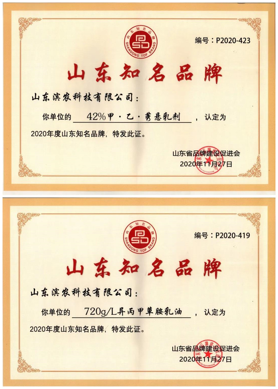 近年來,濱農(nóng)先后自主研制出精異丙甲草胺、西草凈、精穩(wěn)殺得等20余種原藥,制劑方面開發(fā)出了乳油、微乳、水劑、可濕性粉劑等10余個劑型160余個品種,可用于溫、熱帶玉米、水稻、小麥、棉花等30余種農(nóng)作物12億畝次農(nóng)田病蟲草害的有效防除。先后有20余項科研成果被列入省級以上科技發(fā)展計劃,其中1個項目被國家科技部列入國家科技計劃,2個國家重點新產(chǎn)品,1項國家科技人員服務(wù)企業(yè)項目及20余項省級計劃項目立項;2012年獲得濱州市最高科技獎和專利一等獎。